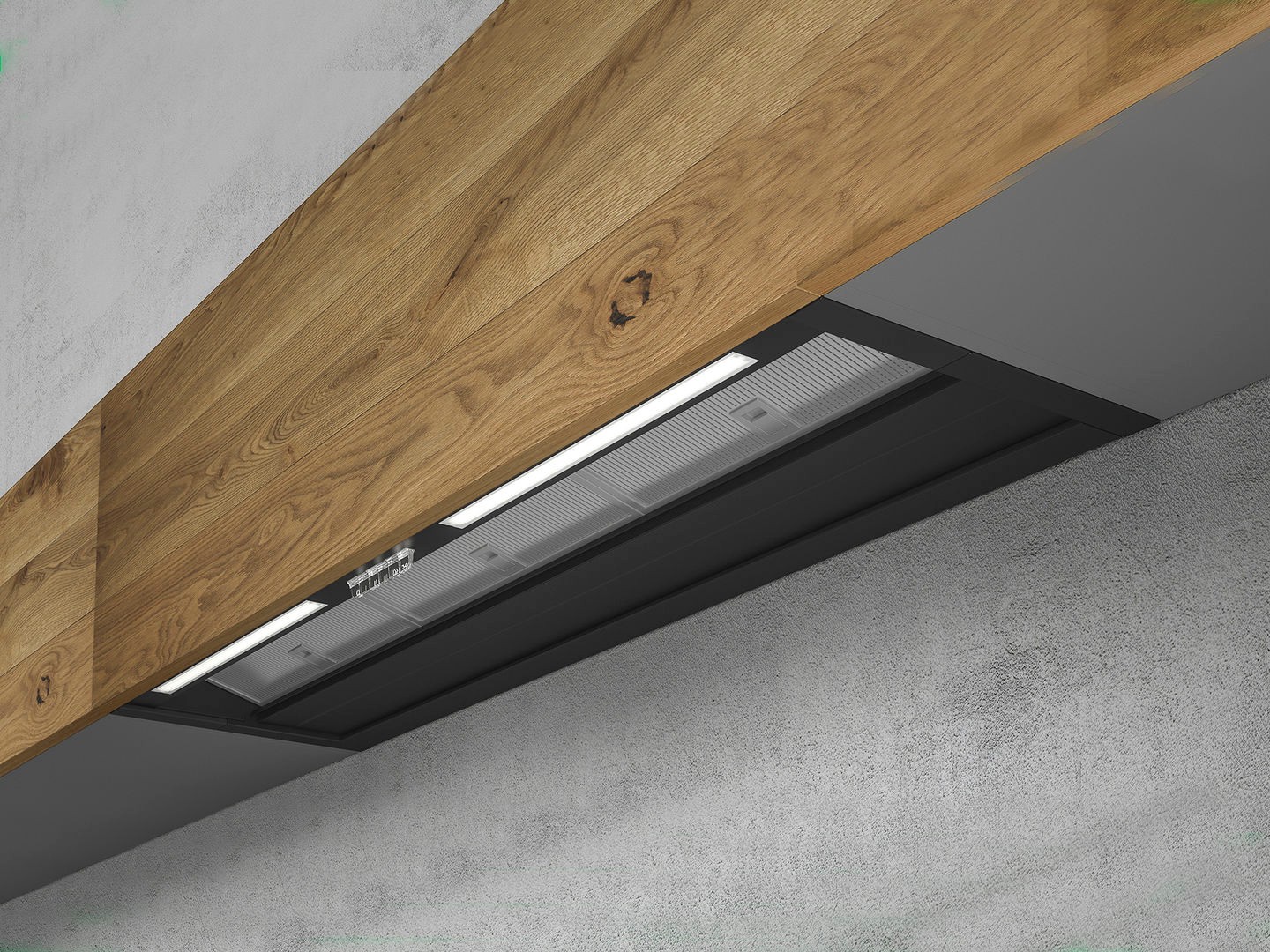 Вытяжка также оборудована запатентованными наклонными решетками Elica, которые благодаря своей особой конструкции способны собирать капли конденсата и переносить их в съемный и моющийся поддон.