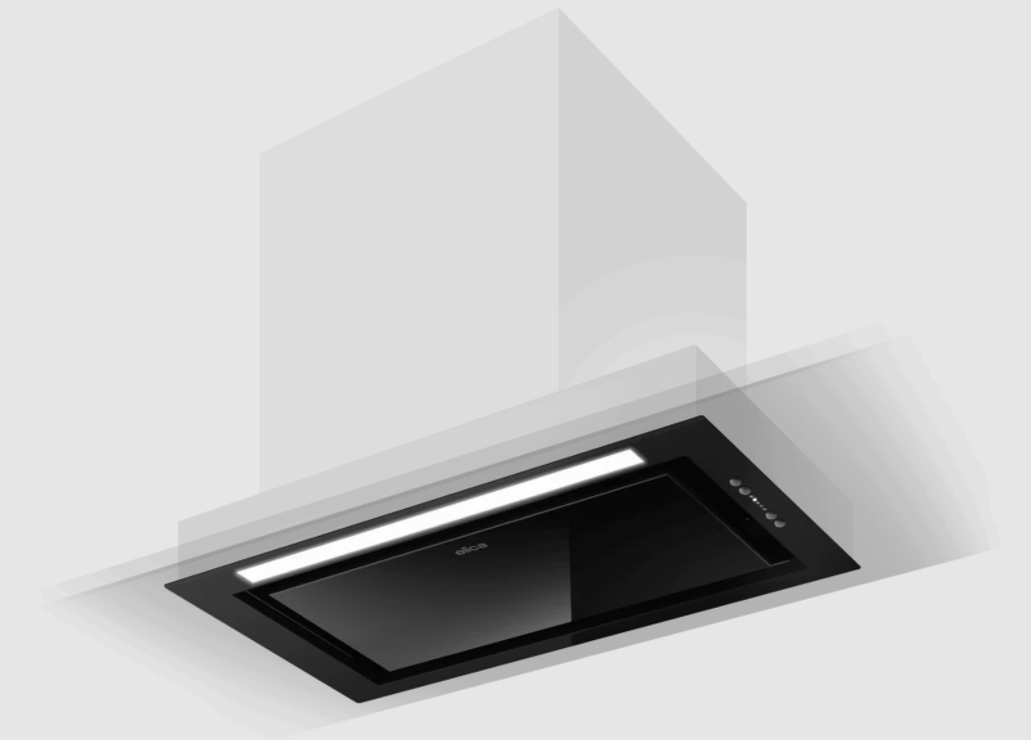Почти незаметная встраиваемая вытяжка, предлагаемая в отделке из нержавеющей стали, черного матового стекла и нержавеющей стали/белого стекла, имеет приятное рассеянное светодиодное освещение и сенсорное управление.