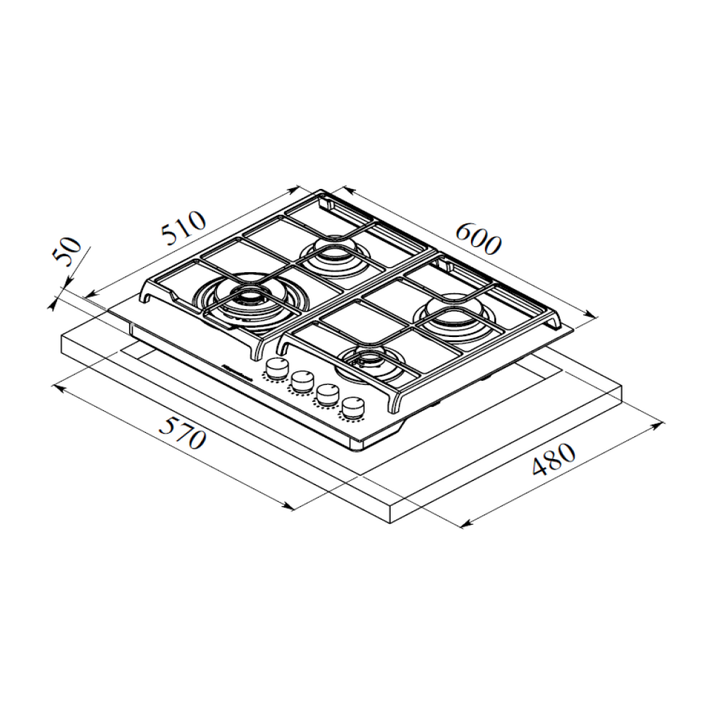 - Габариты ВхШхГ, мм: 50х600х510