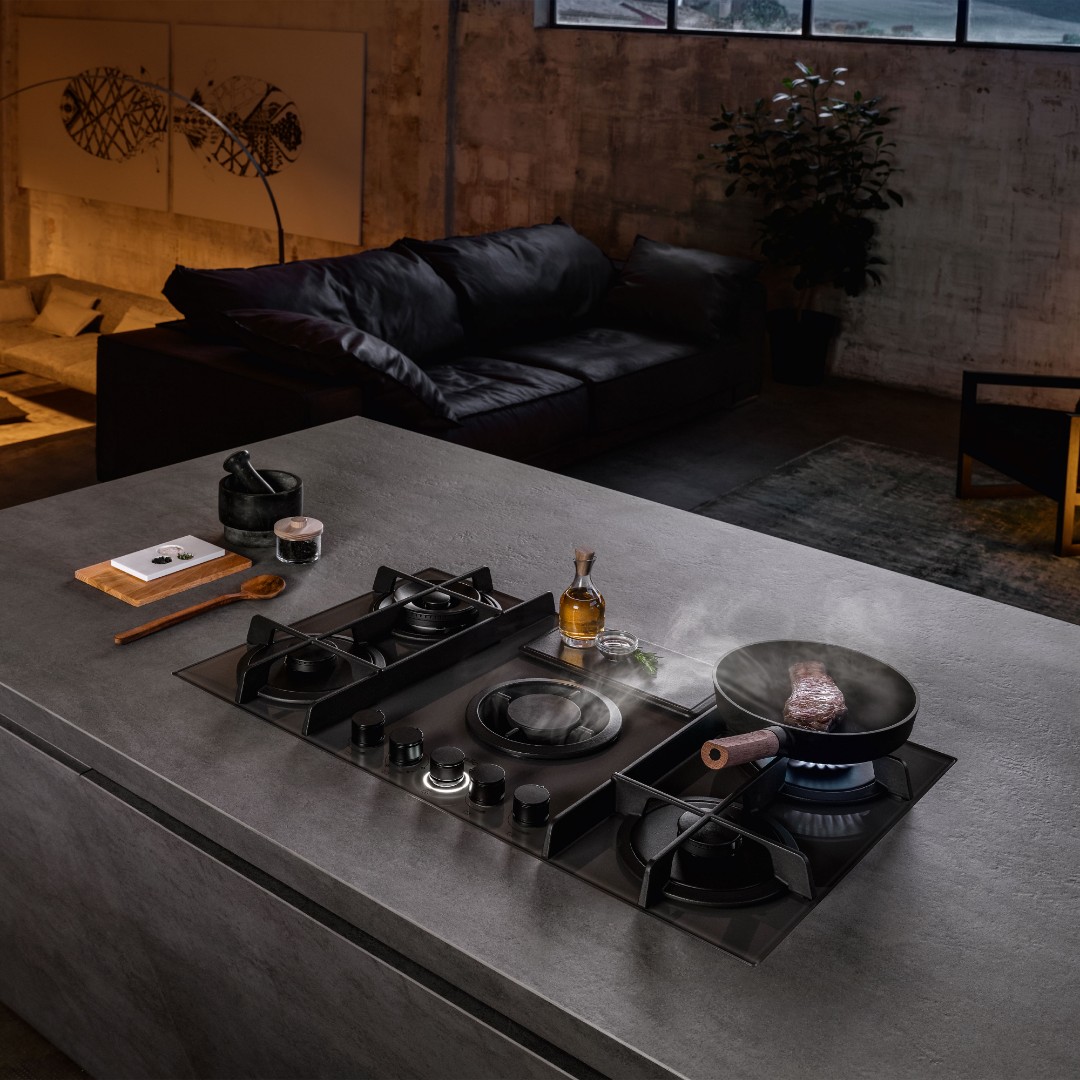 Магия огня, высокая производительность, современные технологии. Наконец-то появилась первая газовая варочная панель, сочетающая аспирацию снизу и классическое приготовление пищи. Максимальная безопасность гарантирована: данный прибор соответствует всем нормам в отношении эффективности и мощности пламени, не жертвуя при этом качеством аспирации.