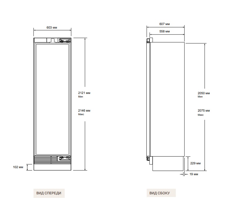 Морозильные камеры доступны шириной 45 см или 60 см, оснащены встроенным диспенсером льда. Сочетаются с моделями холодильных камер, позволяя создавать уникальные решения.