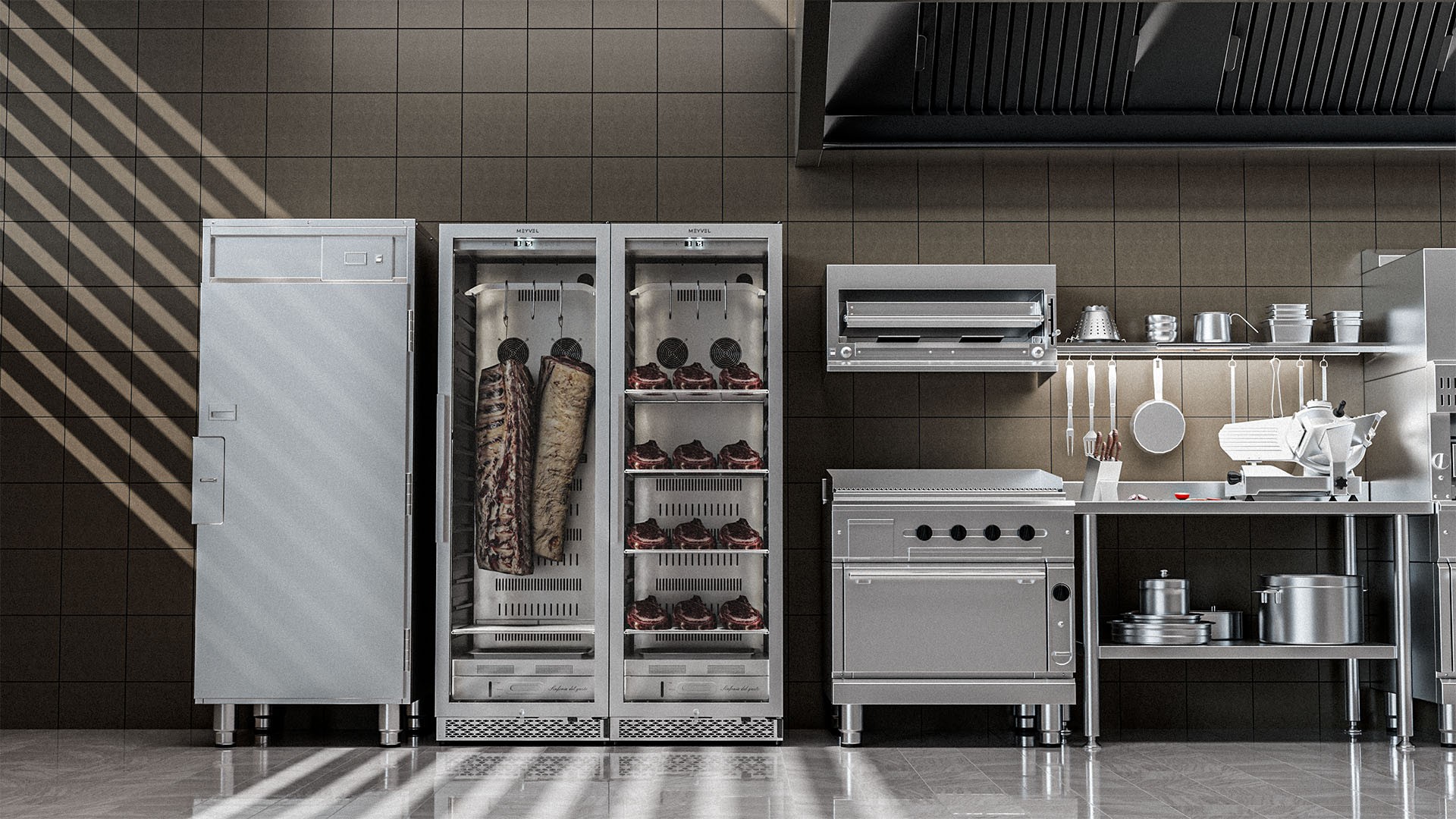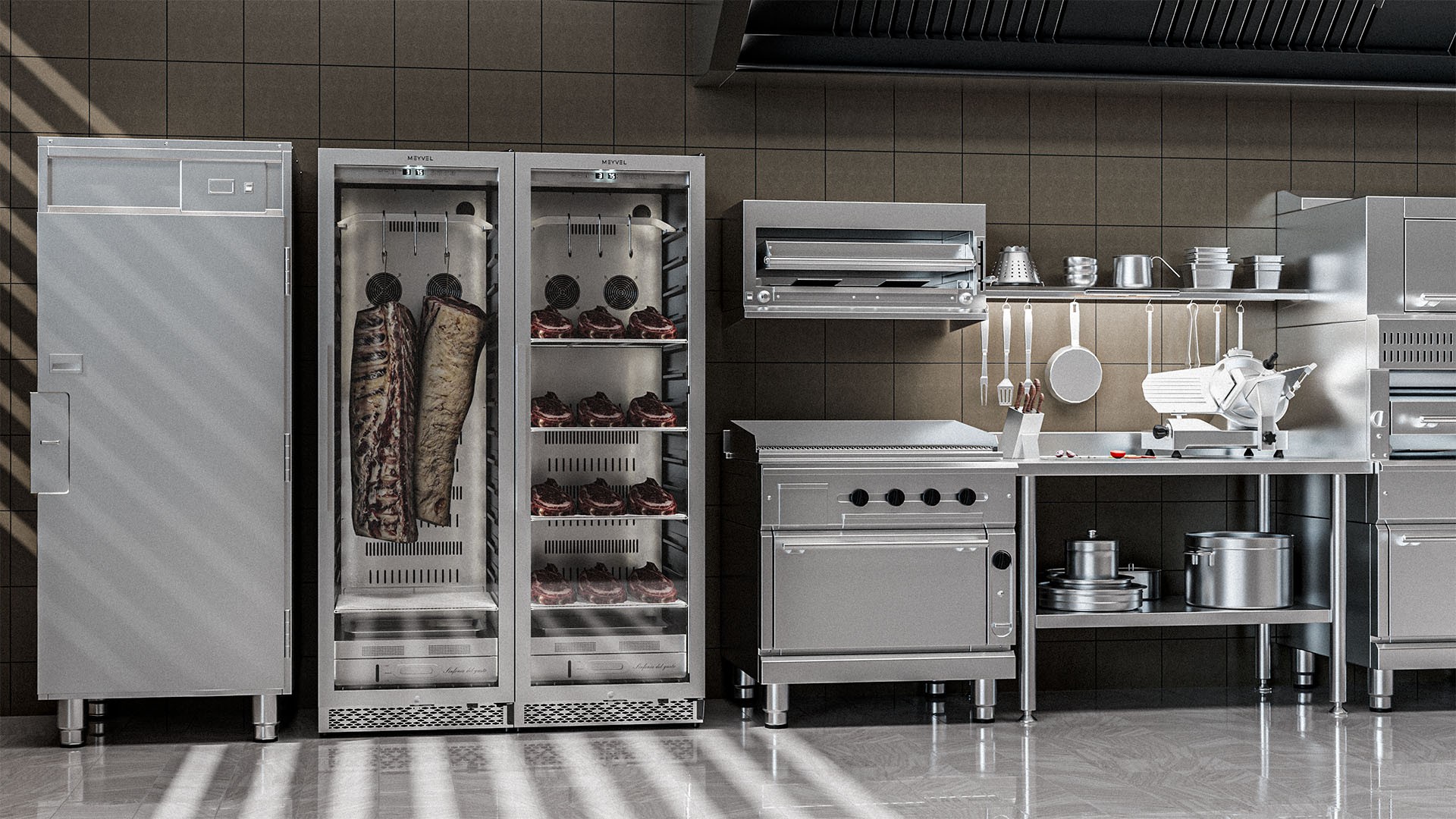 Встраиваемый холодильник для мяса Meyvel MM-135SR — это идеальное решение ресторанов, баров или магазинов. Встраиваемая модель объемом 425 литров вмещает до 135 кг мяса, обеспечивая оптимальные условия для его созревания.